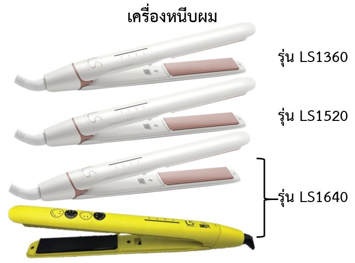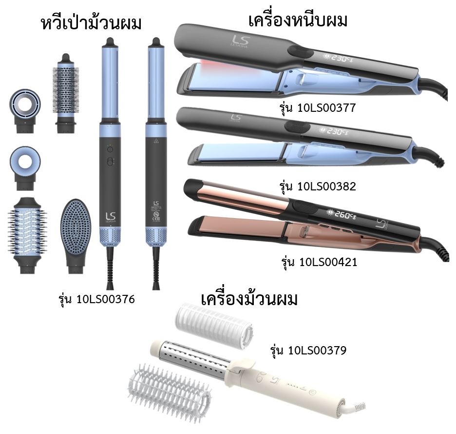 เครื่องหนีบผม รุ่น LS1360, LS1520, LS1640, 10LS00377, 10LS00382, 10LS00421 เครื่องม้วนผม รุ่น LS1361, LS1521, LS1639, 10LS00379 หวีเป่าผม รุ่น LS1379, หวีเป่าม้วนผม รุ่น 10LS00376